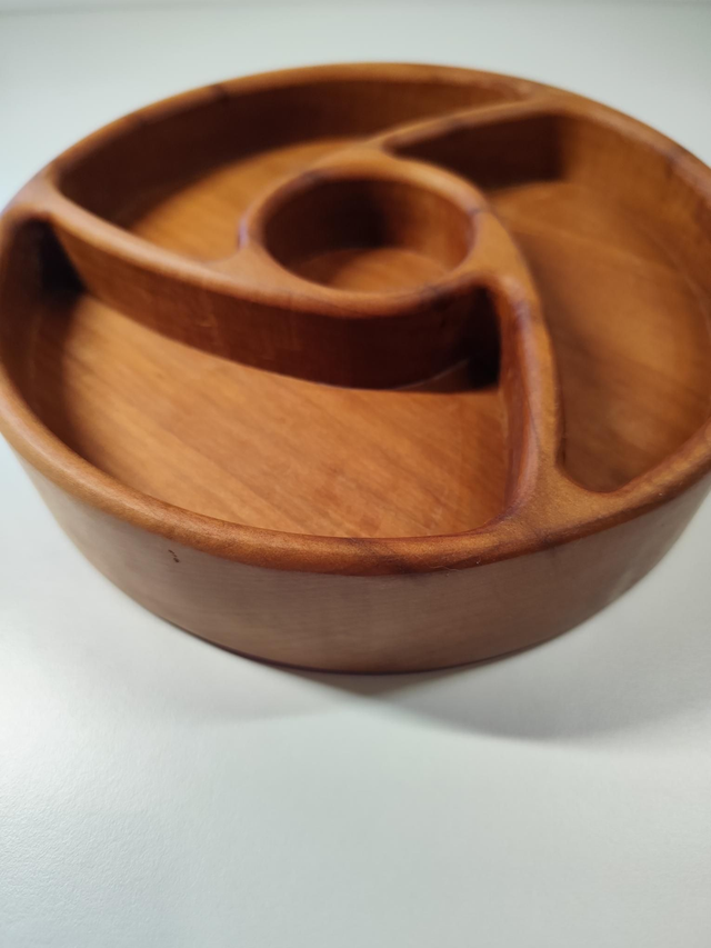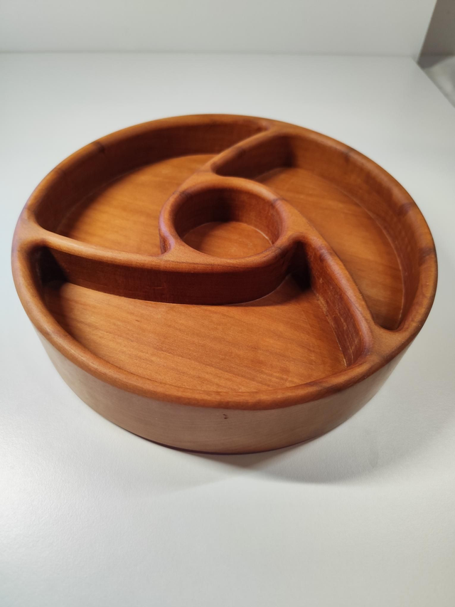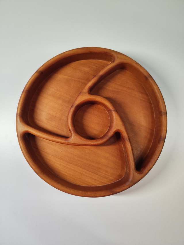 Ses quatres compartiments en spirale sont parfaits pour présenter fruits secs, olives, apéritifs ou douceurs.