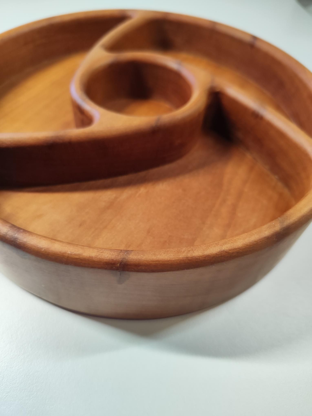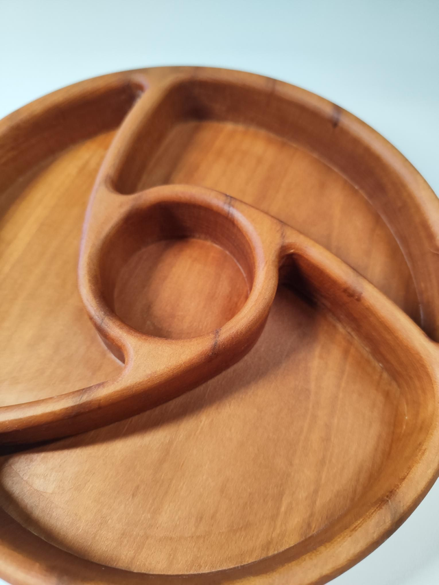 Sculpté dans un bloc de poirier massif, ce grignotier artisanal allie élégance naturelle et praticité.