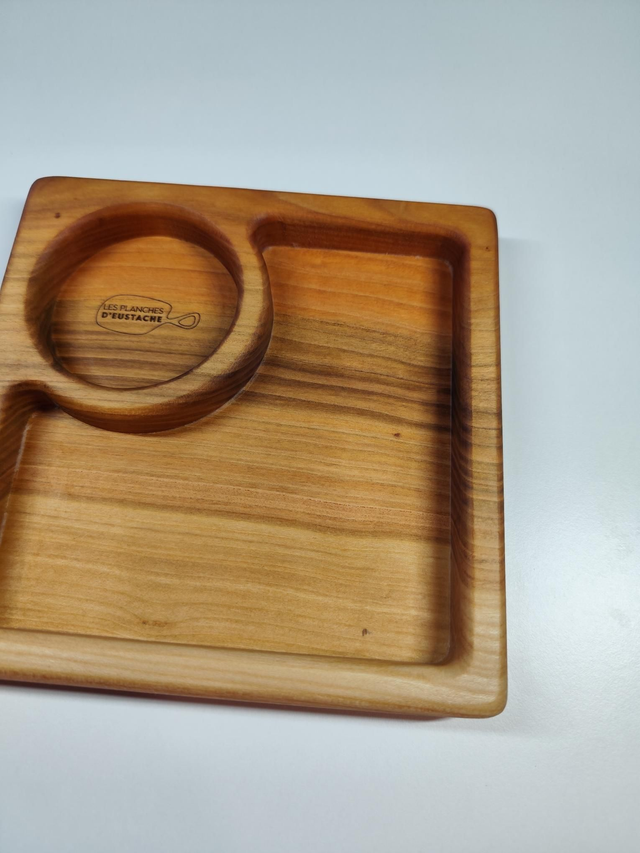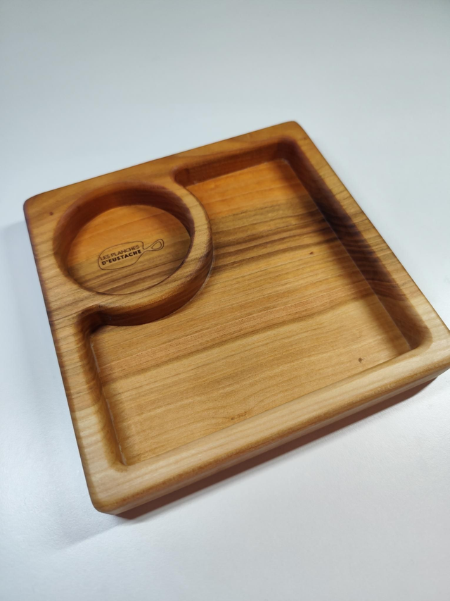 Vide-poche carré en merisier massif à deux compartiments (19,5 x 19,5 cm)
